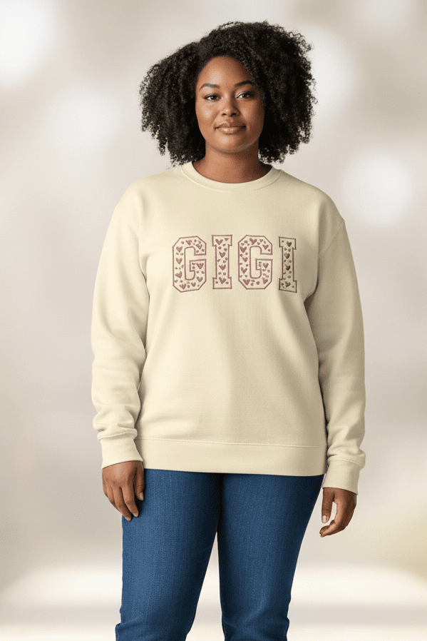 Get ready to fall in love with our GiGi Embroidered Shirt! Our in-house stitched "GiGi" design features a unique blend of reds and silver on a sweatshirt. Made with 100% pre-shrunk cotton and a slouchy fit, this shirt is perfect for any occasion. And with a mineral wash that makes each shirt unique, you'll stand out from the crowd. Don't wait, order now and spread the love!